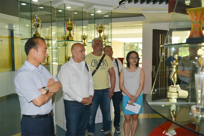 交流会在集团四楼会议室举行,田国锋副总经理热情欢迎客人的到来。观看企业宣传片后,简要介绍了集团的基本情况、行业地位、发展战略、科技实力、海外市场等情况,并就相关合作内容及合作方式等问题,与客人进行了磋商和探讨。