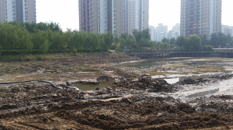 根据设计要求,项目部精心制定了详细的施工计划,为方便湖心排明水及防治地下水渗出,分别设立大功率抽水机,开挖临时施工便道及集水坑,加快了施工进程,保障工程顺利施工。